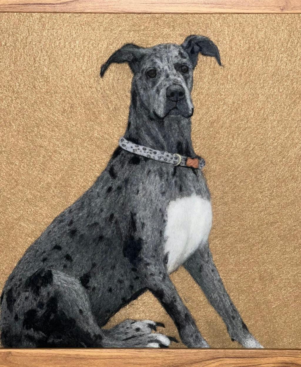 . Each Wool Felted Pet is meticulously tailored to resemble your pet with details like open mouths, birthmarks, spots, and more.
